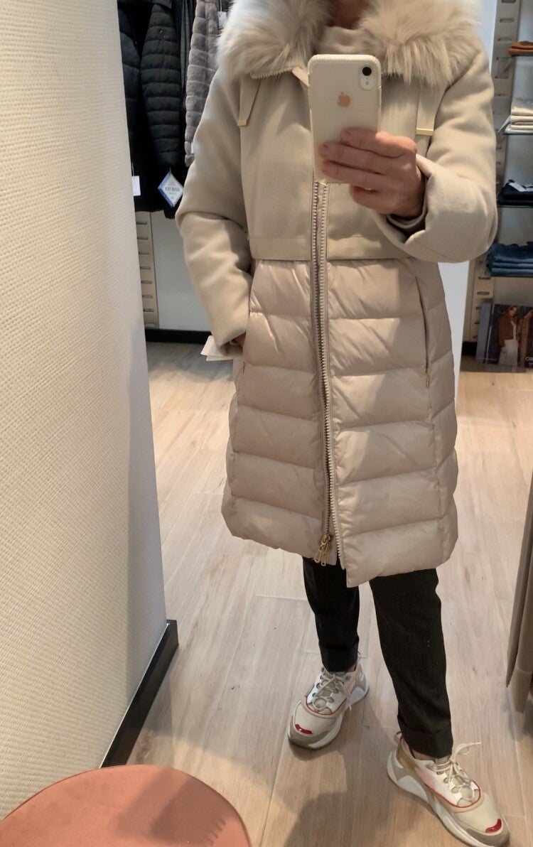 Ecru jas combi wol en nylon met kap