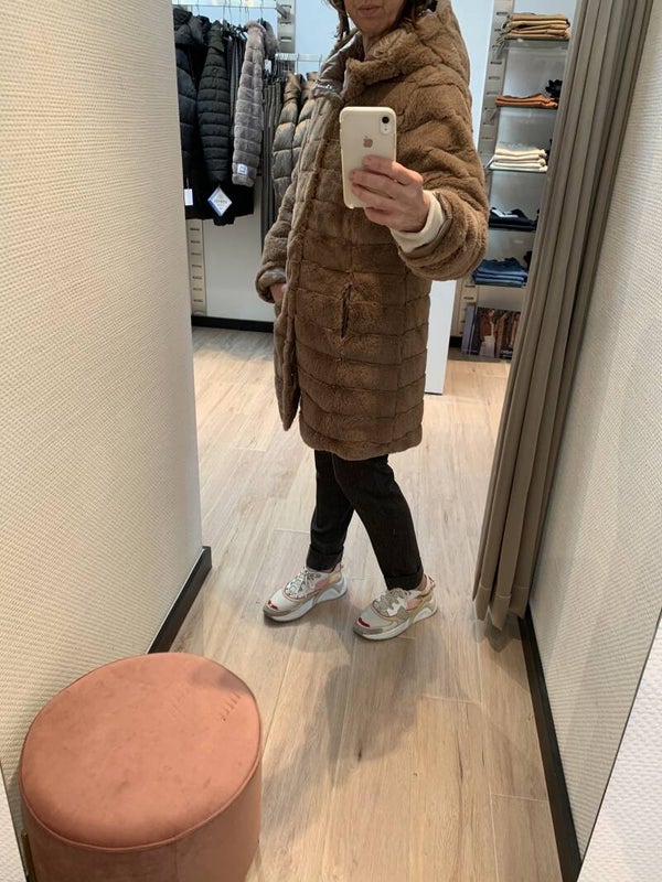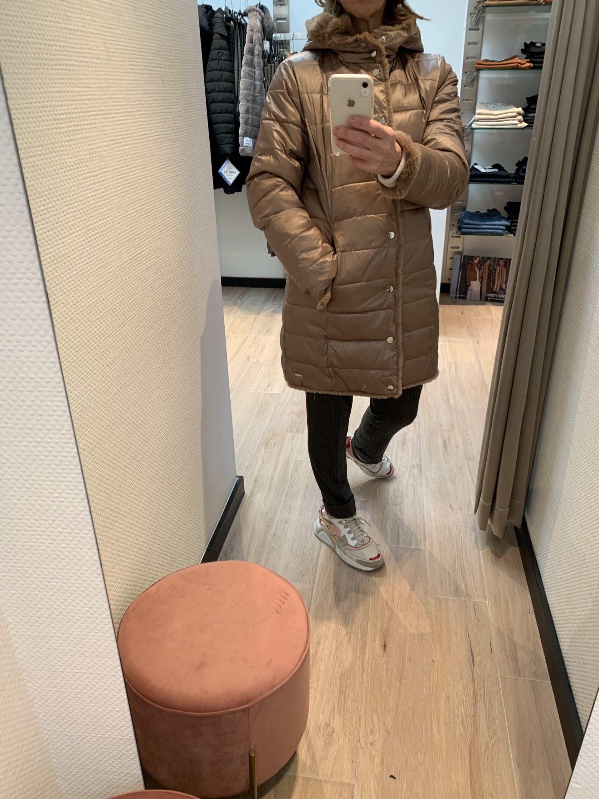 Omkeerbaar pels en nylon met kap en drukknoppen