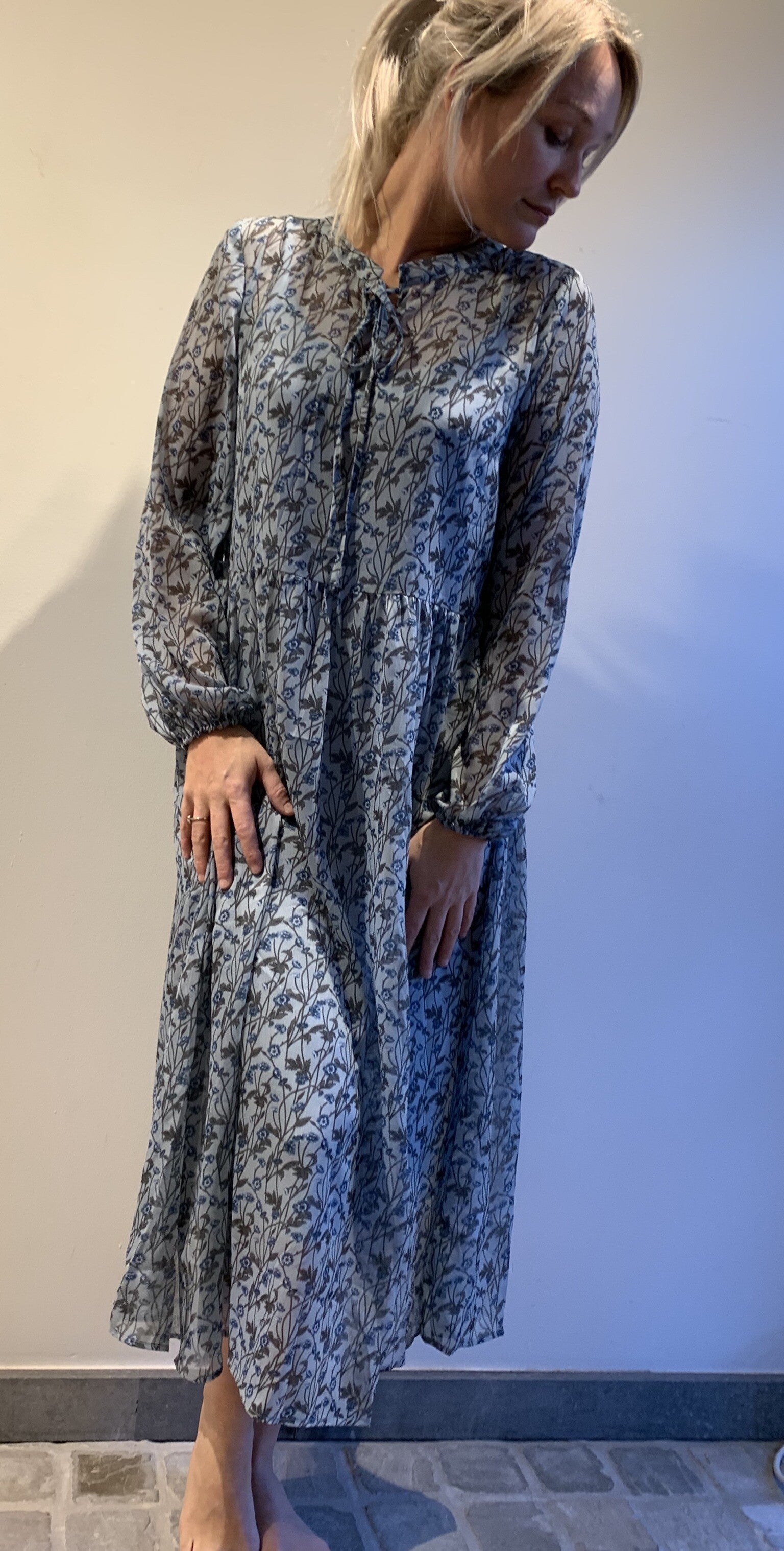 Lange voile jurk lange mouwen licht transparant met onderjurk